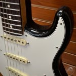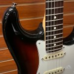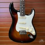 When someone says guitar, there is a good chance this guitar pops into your head. Here we have an all-time classic Fender Stratocaster in the vintage sunburst color. This Strat possesses all of the standard specs of an American build. It has 3 single-coil pickups routed to a 5-way pickup selector. There is a master volume knob that controls the volume for all 3 pickups, and two tone knobs for the bridge and middle pickups. The rosewood fingerboard provides an extra touch of warmth to this guitar's tone, and also helps eliminate some harsher frequencies that ring out on maple necks. Sold with a hard case, this guitar is a phenomenal choice for anyone looking into a new electric!